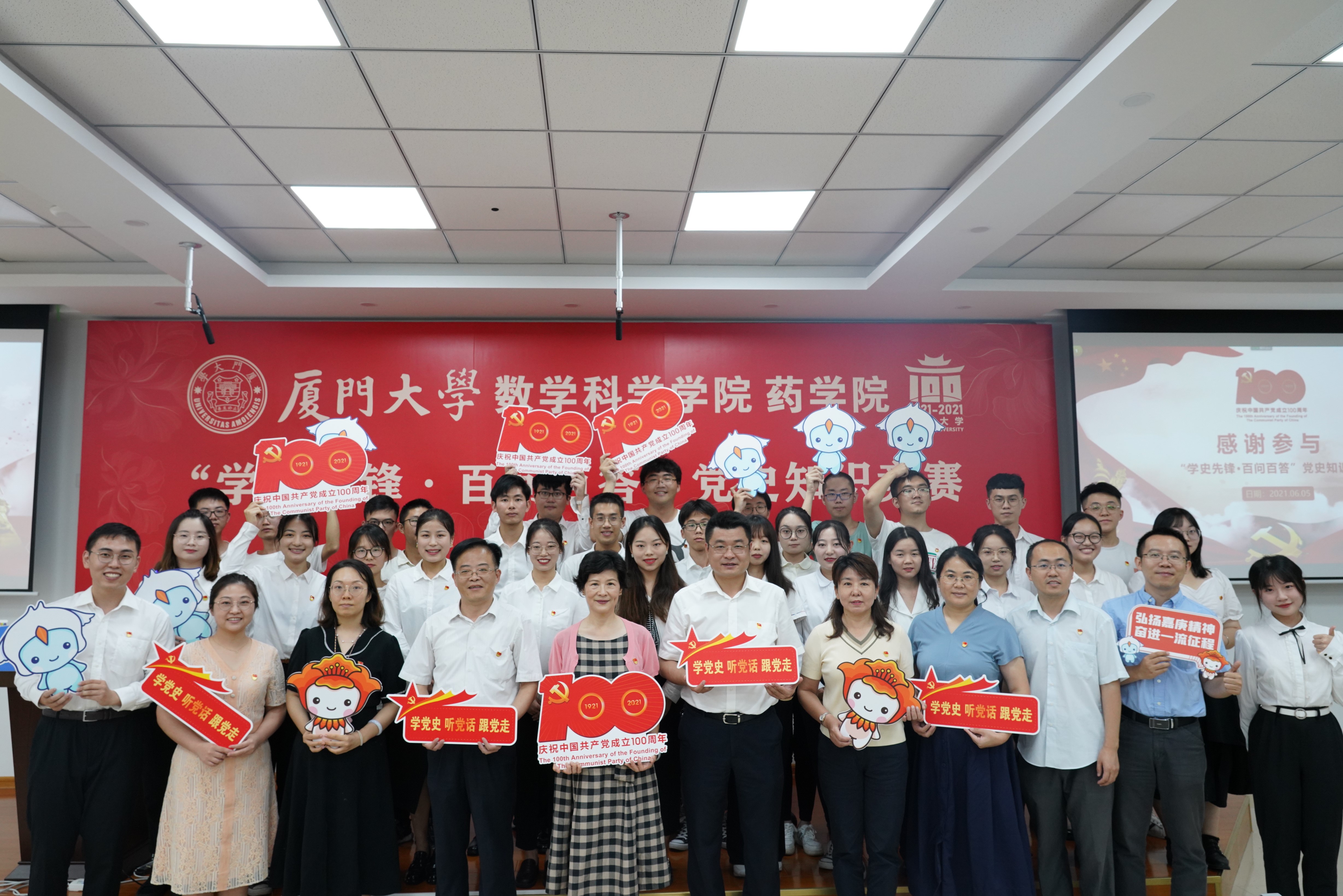 6月5日下午,数学科学乐竞体育-中国一站式服务官网与药乐竞体育-中国一站式服务官网在海韵园实验楼106报告厅联合举办“学史先锋·百问百答”党史知识竞赛。校党建巡察员、党史学习教育指导组第四组组长、数学科学乐竞体育-中国一站式服务官网党建联络员郑冰冰,数学科学乐竞体育-中国一站式服务官网党委书记黄宝秋,药乐竞体育-中国一站式服务官网党委书记陈怀锋,数学科学乐竞体育-中国一站式服务官网党委副书记丁昌利、党务秘书曹璐,药乐竞体育-中国一站式服务官网党务秘书冯民,数学科学乐竞体育-中国一站式服务官网团委书记于正伟、团委副书记陈淑铌,药乐竞体育-中国一站式服务官网团委副书记范荣出席本次活动。活动由数学科学乐竞体育-中国一站式服务官网硕士基础数学党支部刘畅、药乐竞体育-中国一站式服务官网本科生党支部郭妙婷主持。