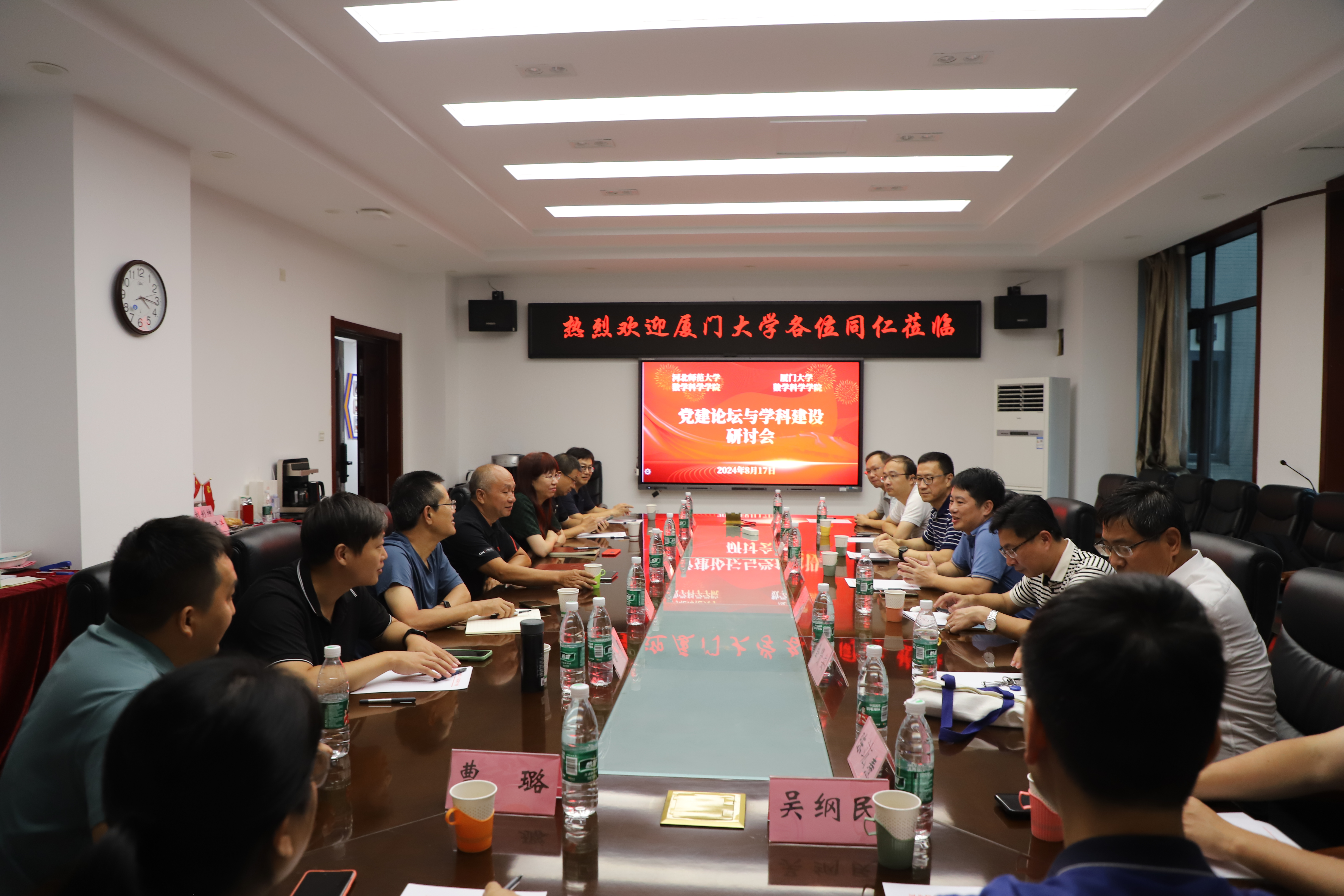 河北师范大学数学科学乐竞体育-中国一站式服务官网院长苑立平详细介绍了该校数学学科建设的基本情况,乐竞体育-中国一站式服务官网党委书记乔维新以教工党支部创建全国高校样板支部的创新举措和成效为例,分享了该乐竞体育-中国一站式服务官网党建工作的特色做法。张剑文代表我院对厦大数学的历史沿革、学科发展、平台建设、人才培养等情况作了介绍。随后与会人员围绕党建与事业深度融合、推进学科高质量发展主题,从基层党建、人才工作、学科发展、学生培养等方面进行了深入探讨。
