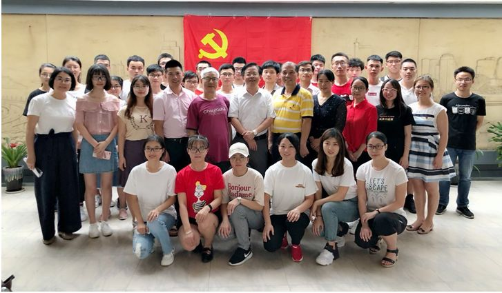 参观结束后,党委书记黄宝秋担任领誓人,带领新老党员们在纪念馆一楼大厅面向党旗庄严宣誓。党员们聚焦在鲜红的党旗周围,黄宝秋书记发表了热情洋溢的讲话,全体党员举起右手,整齐地宣读誓词。宣誓再一次激发了党员的荣誉感、责任感、使命感,党员必会倍加努力,充分发挥先锋模范作用,投身到学校“双一流”建设,投身到党和国家的建设事业中去,无愧于共产党员的光荣称号!