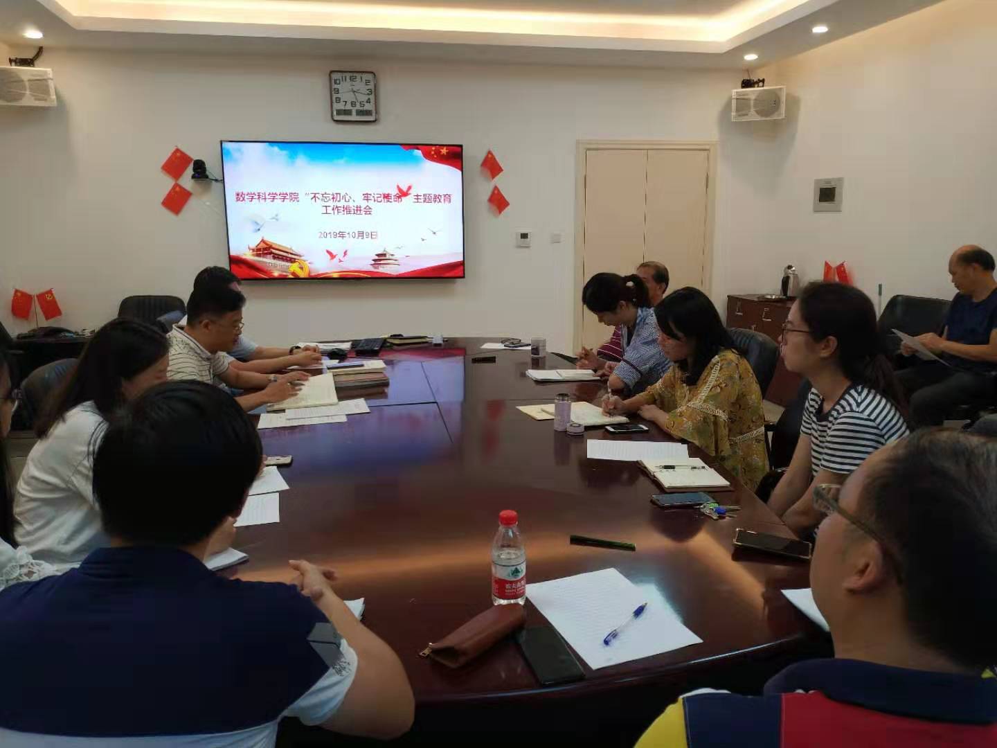 为将学校“不忘初心、牢记使命”主题教育推进会精神和主题教育各项任务落细落实,加强对各支部主题教育工作的指导推进,10月9日下午,数学科学乐竞体育-中国一站式服务官网党委召开“不忘初心、牢记使命”主题教育工作推进会。院党委书记黄宝秋出席并讲话,院党委副书记陈国强、全体党支部书记参加会议。