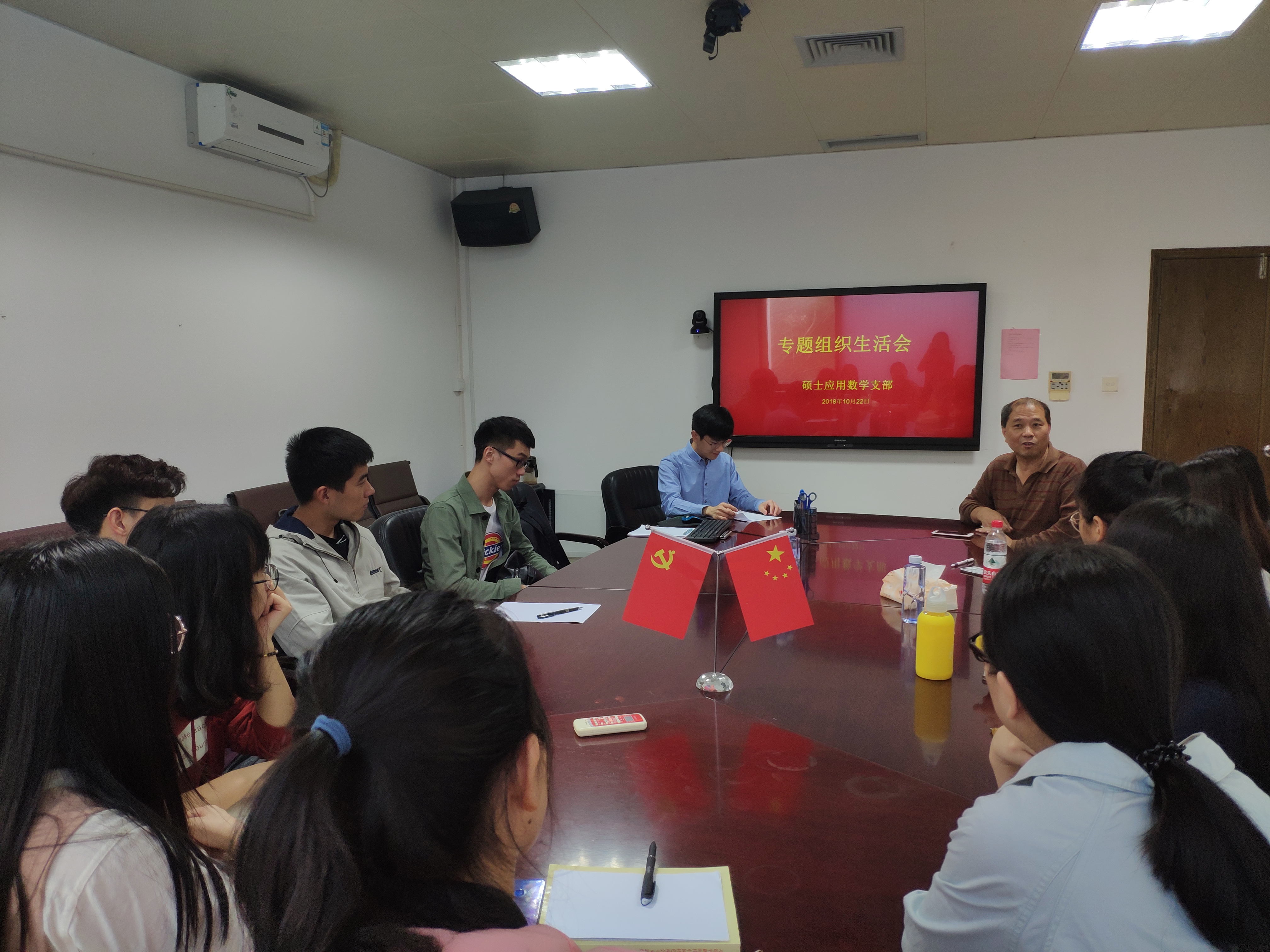 2018年10月22日硕士应用数学党支部于行政楼B313召开专题组织生活会,党委副书记陈国强同志全程参加会议。