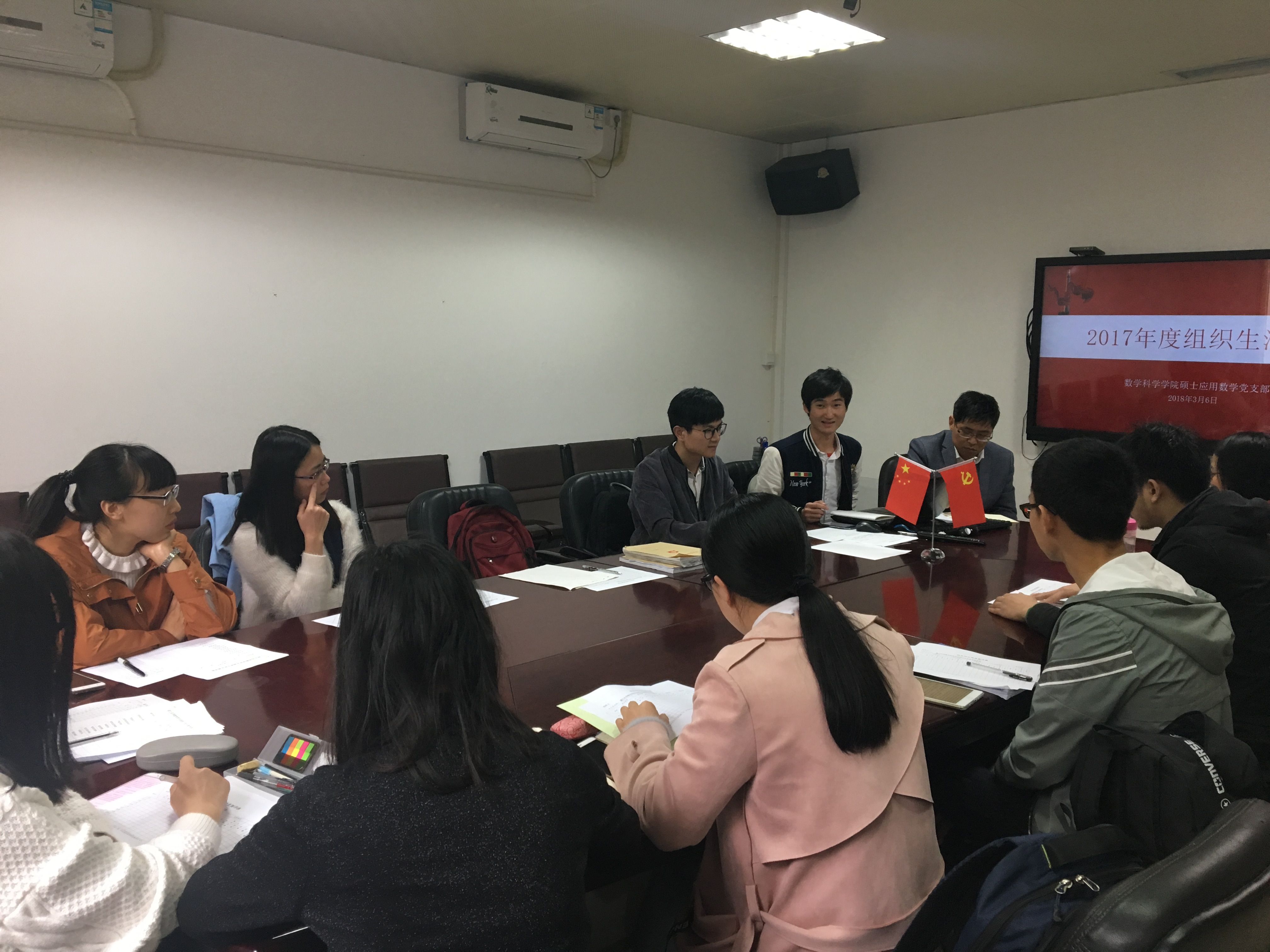 2018年3月6日下午,数学科学乐竞体育-中国一站式服务官网硕士应用数学党支部在B313召开2017年度组织生活会。副院长金贤安作为支部联系领导参加次议。