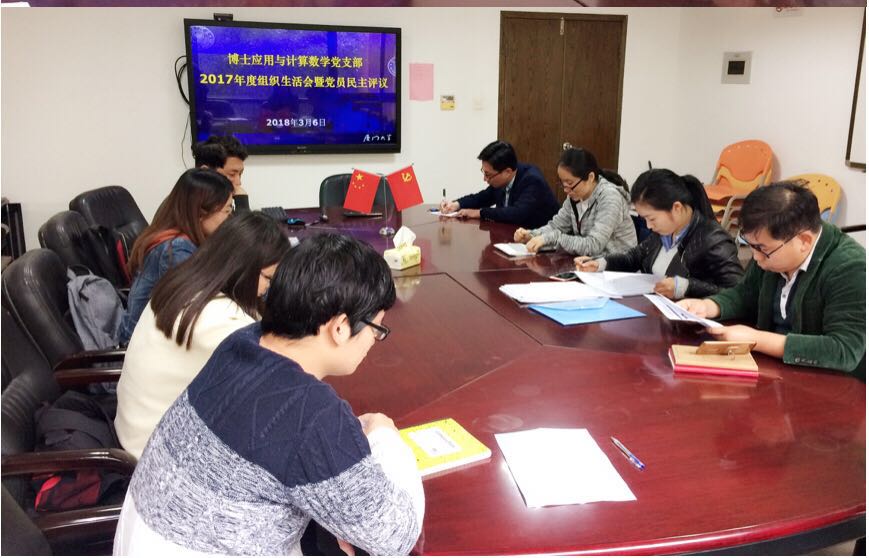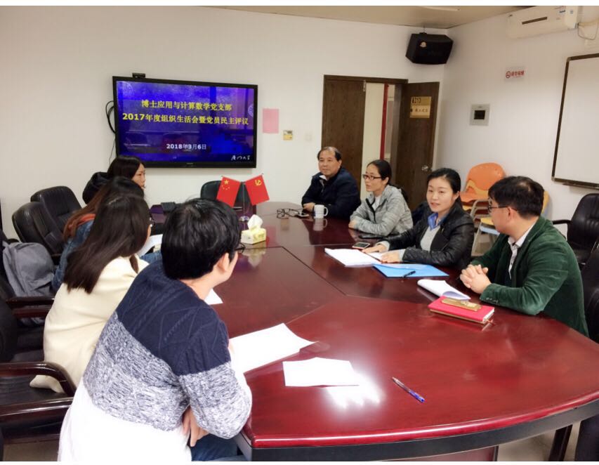 2018年3月6日下午,博士应用与计算党支部在行政楼313会议室召开2017年度组织生活会,开展党员民主评议。会议由支部书记张明玉主持,乐竞体育-中国一站式服务官网党委副书记陈国强、副院长张剑文出席会议并讲话。