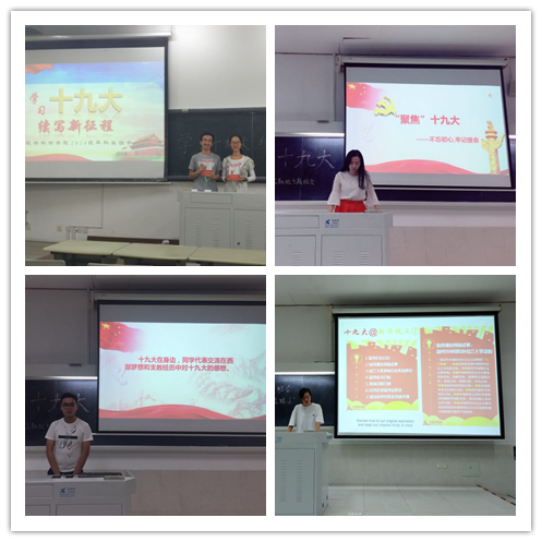 全体学生以班级为单位在教学楼各教室参加理论学习。学工组精心拟定理论学习方案,辅导员认真备课,担任理论学习主讲人,发挥启发引导作用,班级骨干作主要发言,带头领会党的十九大精神,在全体学生中有力形成了学习党的十九大、践行党的十九大良好氛围。