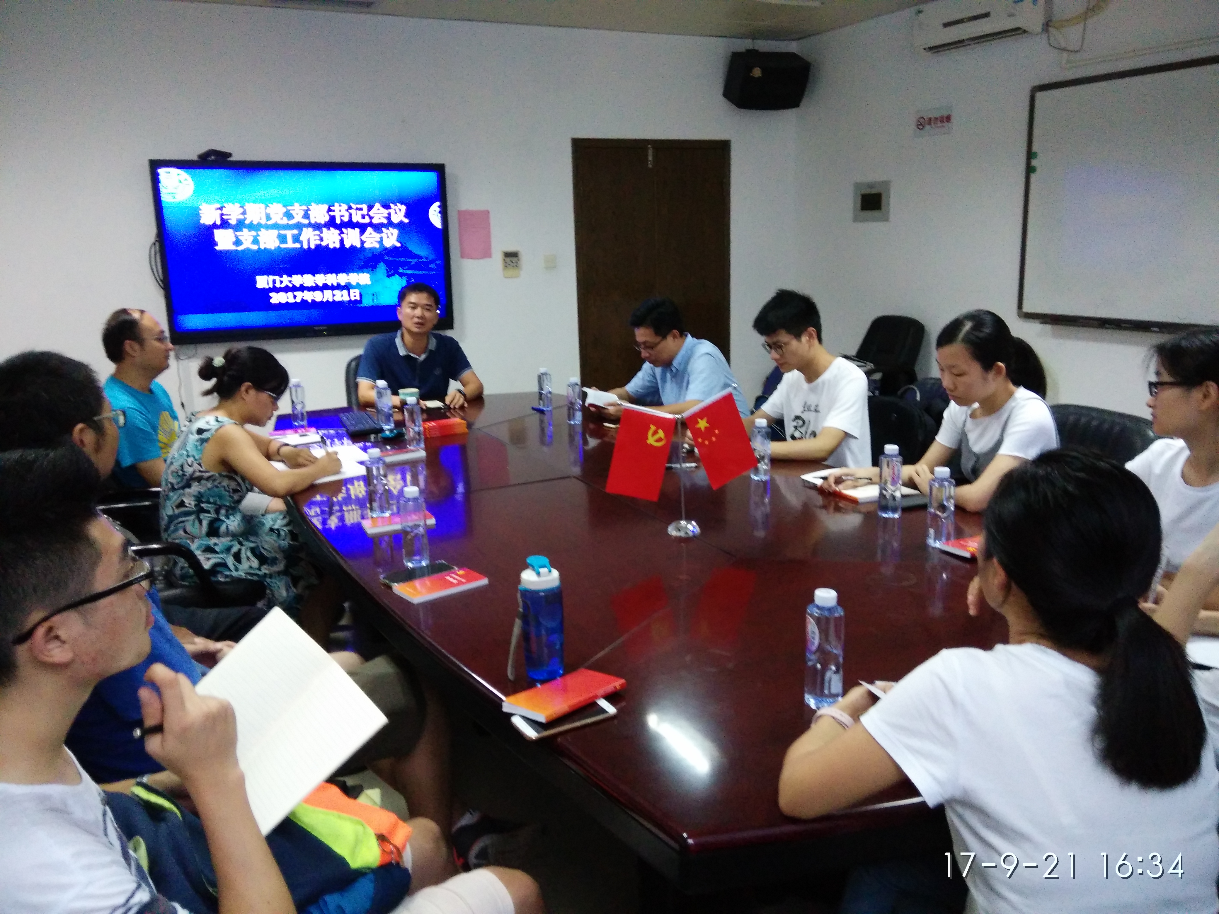 2017年9月21日下午,新学期党支部书记会议暨支部工作培训会在313会议室召开。党委书记张明智出席并讲话,党委副书记张剑文、全体党支部书记参加会议。