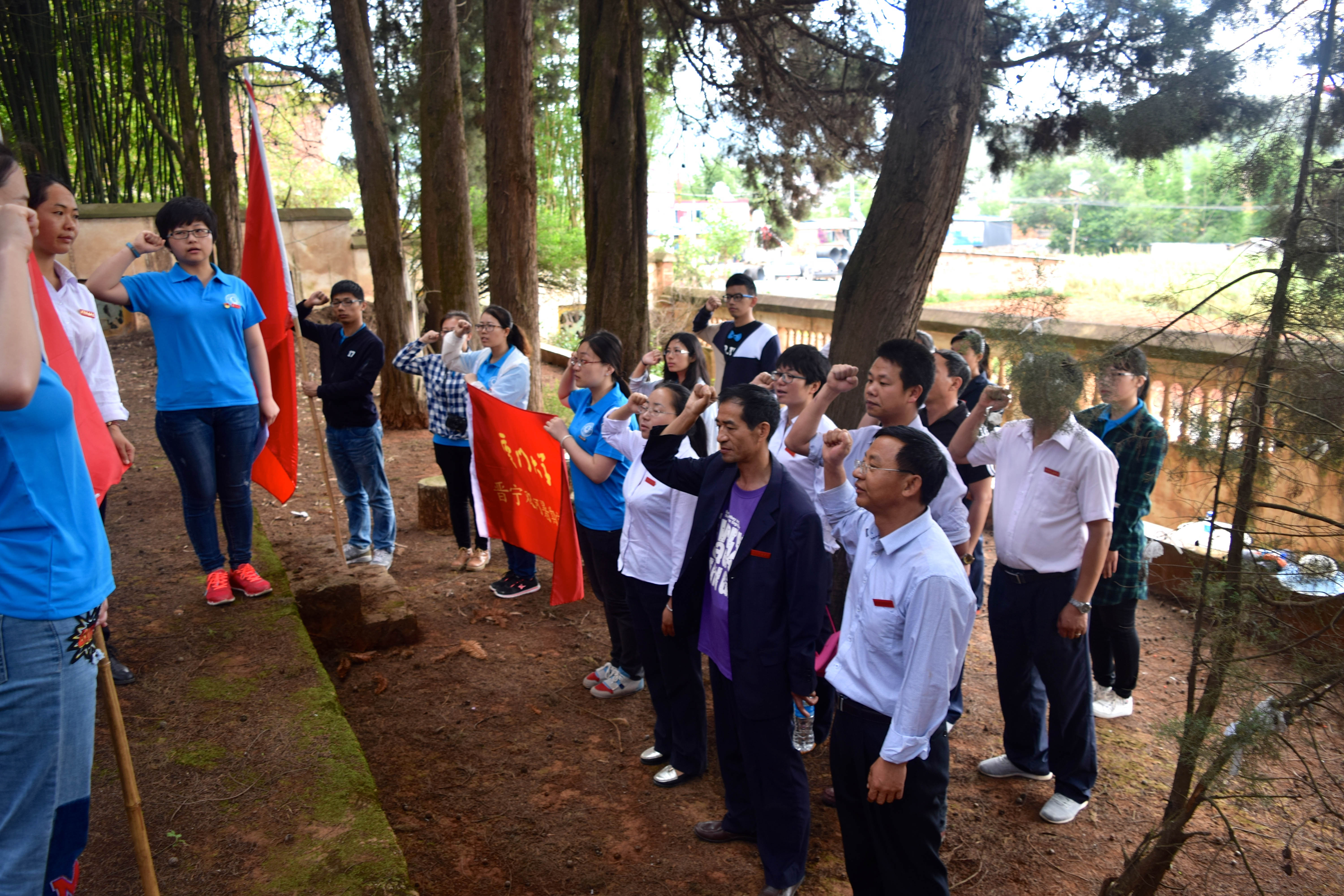 531日上午,实践队全体党员在双河民族中学党支部书记郭宁老师的带领下,与中学全体党员教师集体前往双河彝族乡烈士陵园缅怀革命先烈,重温入党誓词。
