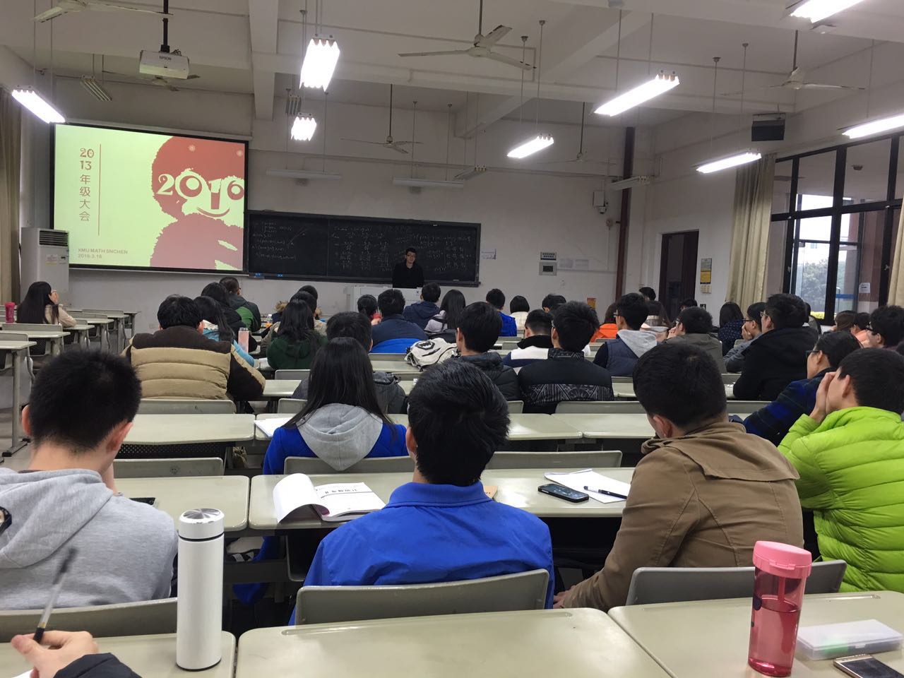 本次年级大会上,陈淑铌老师特地为同学们做了职业生涯规划的引导。大学四年走入后半段,学生们对毕业后的道路有了更多考虑。保研、考研、出国、工作,各种问题接踵而至。因此,本次年级大会特地邀请了我院本科生教学秘书黄晨龙向大家详细说明了保研工作的相关内容,陈淑铌老师就出国、工作两个方面针对大家关心的问题进行了详细的介绍。她建议同学们要根据自己的目标,抓紧时间,合理规划,积极利用校友资源,主动联系正在相关学校、专业领域的学长学姐。会后,2013级在年级群中迅速建立了相关的经验交流贴,互帮互助,实现信息实时共享。