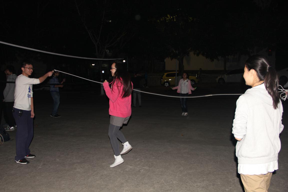 跳绳作为最普及的运动之一,深受同学们的欢迎。每周的一三日晚上10点,同学们便会聚集在海韵一期篮球场,开始一天紧张学习后的快乐玩耍。有的几个一组抡起大绳,轮流“下饺子”,体验着团队的乐趣;有的则是二个或三个一块儿,一起切磋跳绳的花样玩法:双人跳,三摇甚至四摇,编花等,众多的花样,让人体会到跳绳独特的魅力。同学之间的友谊,也在一片欢声笑语中增进。