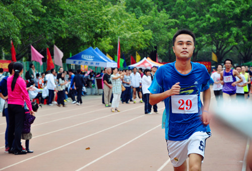 在此次运动会前,为了保证在团体项目上的发挥与配合,我院研究生代表队曾多次组织运动员参与集训。在赛场上,运动健儿们努力拼搏,永不言弃。在研究生组男子5000米,女子3000米的赛场上,跑道虽长,但是我院的运动健儿们却从不轻言放弃,他们信念坚定,始终一步步地向着终点跑去,精神令人敬佩。在研究生组30*60的男女混合接力赛中,虽然有阵雨袭扰,雨水打在了他们的脸上,模糊了他们是视线,但所有的运动健儿依然在比赛中,表现出了顽强、拼搏、团结的意识品质。小小接力棒,传出的是友情、默契和期望。我院研究生代表队还参加了4*100男女接力赛、男子1500米、女子800米、男女铅球等比赛,12级硕士研究生万琴同学在女子铅球比赛中取得了第五名的好成绩。在各项比赛中,虽然某些成绩并不突出,但所有的运动健儿们都赛出了自己的风采和水平。