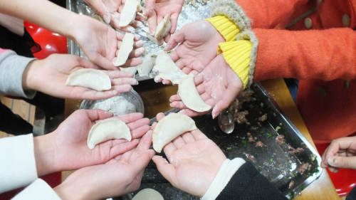 活动在一片温馨祥和的气氛中展开,首先主持人向大家介绍了冬至的由来以及在冬至吃饺子的习俗,向大家展示了传统文化的魅力。然后主持人宣布开始包饺子,我院同学积极踊跃动手,忙得热火朝天,不亦乐乎。此外大家充分发挥想象力和创造性,花样百出制作出各种创意饺子,为本次活动增色不少。在包饺子的过程中,各位同学相互交流,相互切磋,向大家展示自己家乡的饺子文化,既增进了感情,又增长了见识。最后各位同学尝到了自己亲手做的饺子,尝到了自己的劳动果实,觉得甚是欣慰。包饺子活动结束后,本次活动进入游戏环节,同学们踊跃参加,在轻松的氛围中大家比智慧比灵敏度,全场笑声不断。