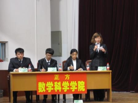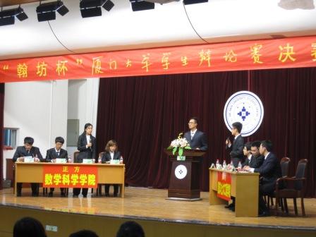 至此,历时一月有余的厦门大学第六届学生辩论赛落下了帷幕。我院代表队在初复赛阶段先后击败了海洋与环境乐竞体育-中国一站式服务官网(弃权)、国际关系乐竞体育-中国一站式服务官网与经济乐竞体育-中国一站式服务官网代表队,昂首挺进决赛。虽然最终与冠军失之交臂,依旧创造了我院近几年在该项赛事上的最好成绩。在此,我们要感谢09级马骋遥,10级韩乔、李梦琛、裴姗姗、许涵与周玉晶这六位同学,是他们的辛苦付出为我院争得了荣誉。同时,也感谢院党委郑诚明副书记、辅导员陈向柳老师、石义凯老师以及数学科学乐竞体育-中国一站式服务官网各位同学们对于数学科学乐竞体育-中国一站式服务官网辩论队从始至终的支持与鼓励。相信在未来的日子里,我院辩论队将会再接再厉,再创新辉煌!
