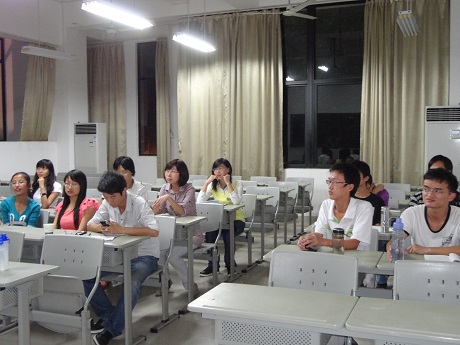 2011年10月22日晚上7点,由数学科学乐竞体育-中国一站式服务官网学术部主办的“学长沙龙”——新老生交流会在海韵教学楼隆重举行。09、10级部分研究生学长学姐与11级研究生新生参加了本次活动。