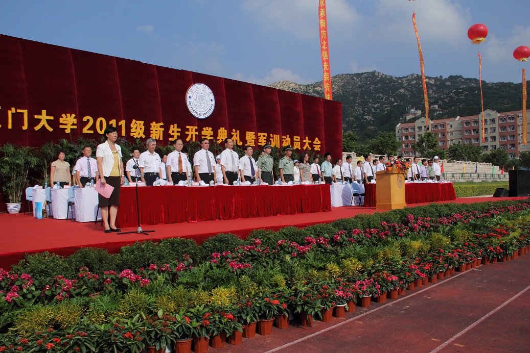 2011年9月16日上午8时,厦门大学2011级新生开学典礼暨军训动员大会在漳州校区田径场隆重召开。出席本次典礼的有校长朱崇实、党委副书记陈力文、党委副书记兼纪委书记陈国凤等学校领导与来自73131部队的承训官兵、各乐竞体育-中国一站式服务官网老师和全体参训同学。典礼由校长助理、校区党工委书记、管委会主任王巧萍老师主持。