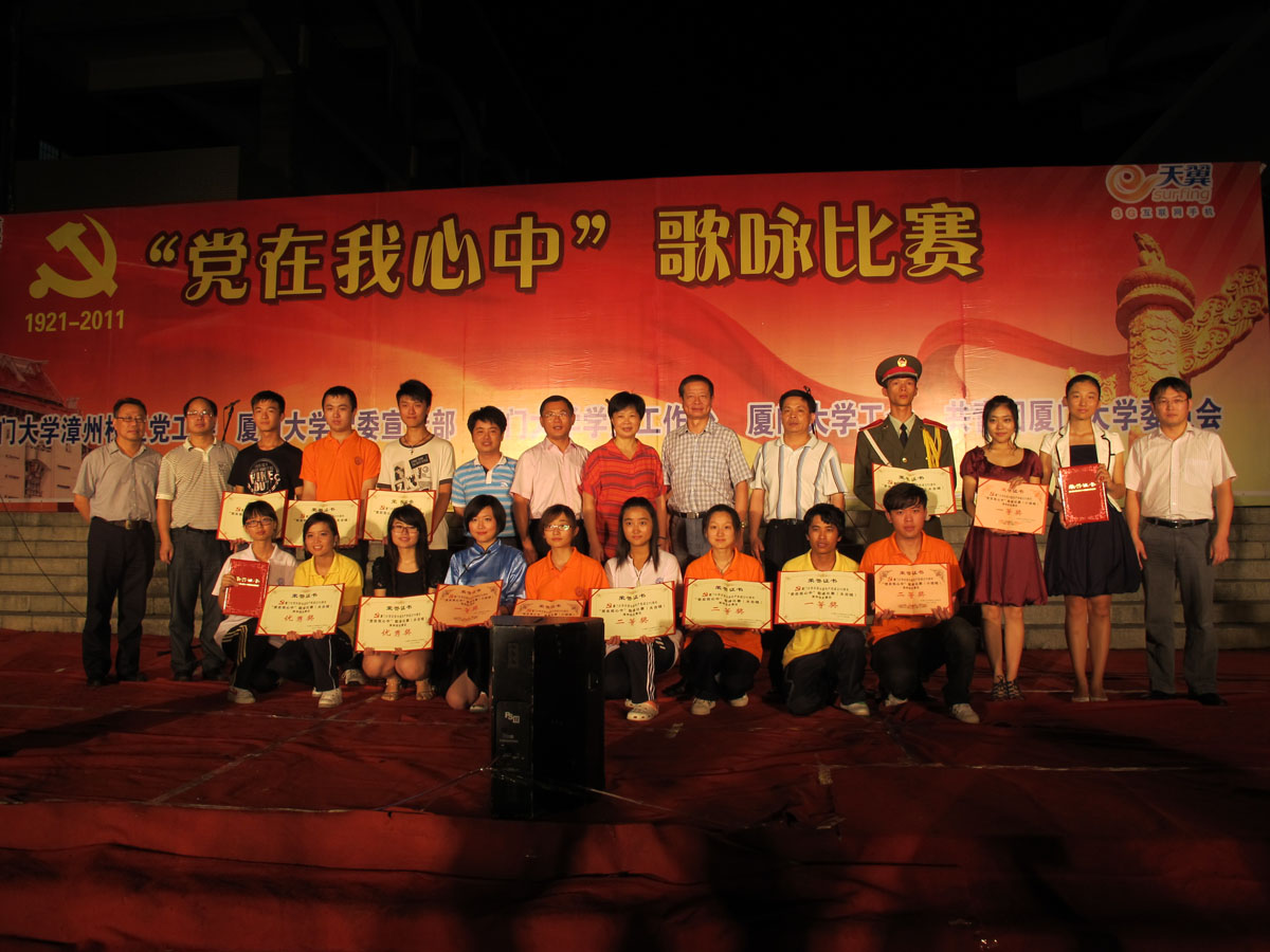 6月29日晚7点,厦门大学“党在我心中”歌咏比赛决赛在漳州校区北区步行广场上隆重举行,此次决赛分小组唱和大合唱两部分进行。院团委副书记杨机像来到现场为同学们加油,最终由我院与国际关系乐竞体育-中国一站式服务官网联合组成的代表队在大合唱比赛中以9.476的最后得分获得三等奖。