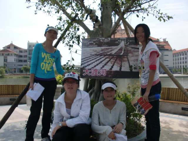 为庆祝建党90周年,“探寻红色足迹”定向越野挑战赛决赛于2011年6月26日上午八点三十分正式开始。经过25日的激烈角逐,我院女生队伍09级刘玉婷、王倩雯、10级方璘文若、林琴和男生队伍10级吴文燚、黄洁、张新栋、高宇奕参加。尽管天气炎热,烈日当头,又经过了一个半小时的等待,我院选手依然斗志昂扬。