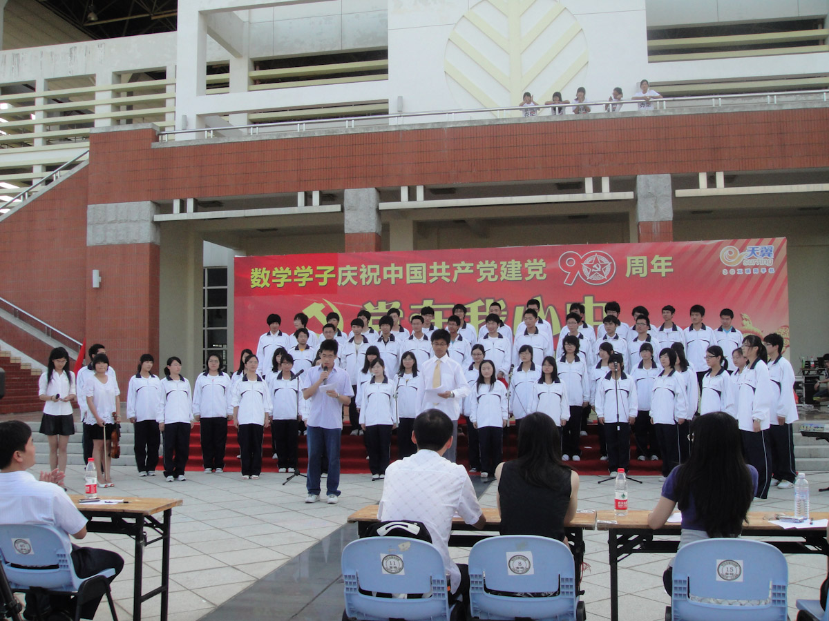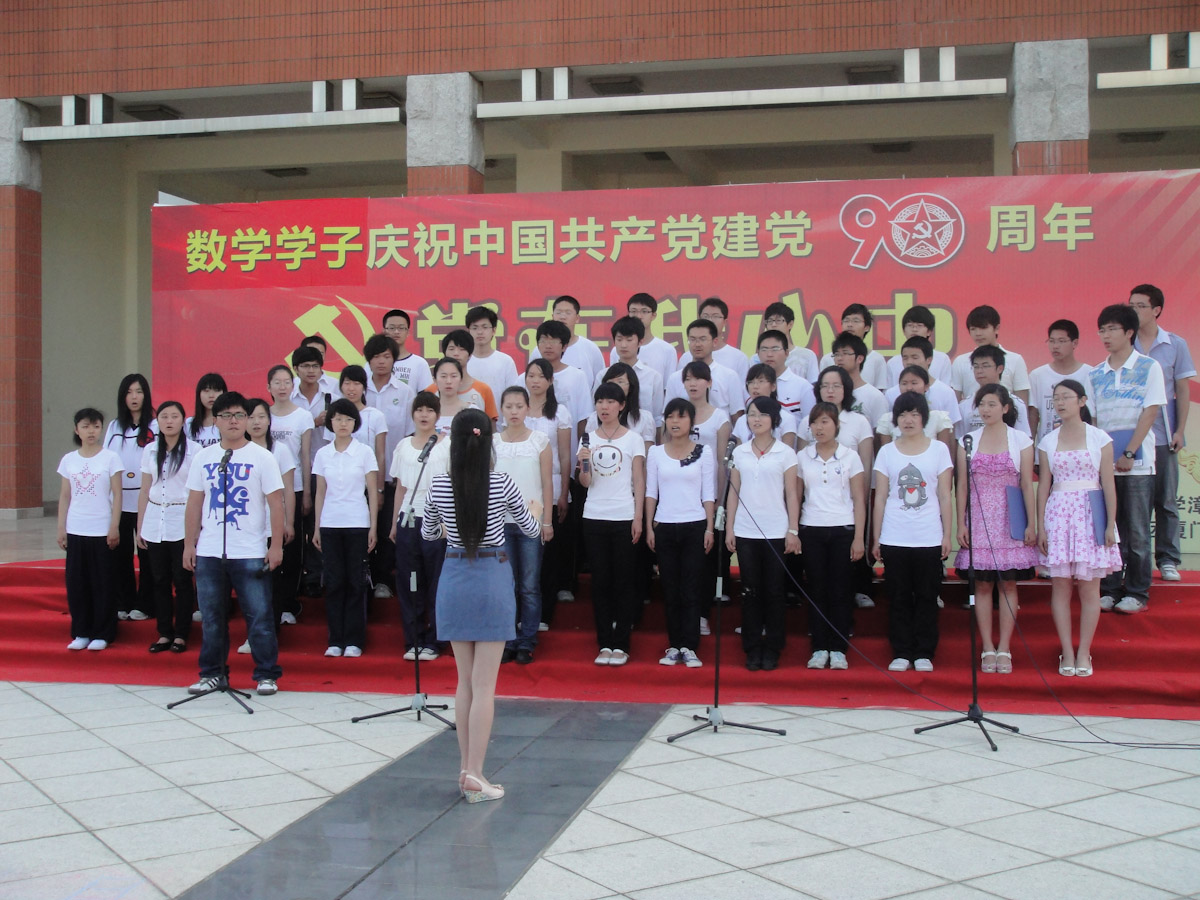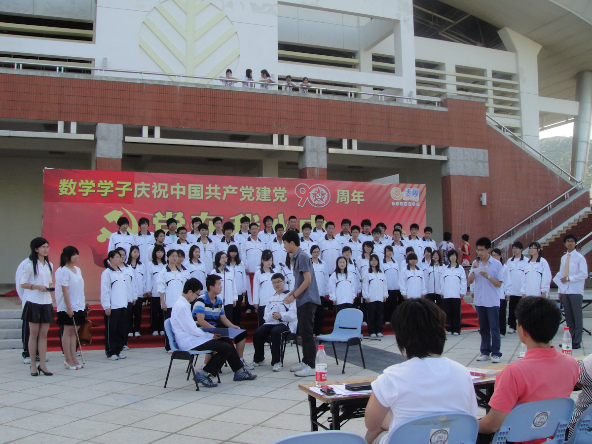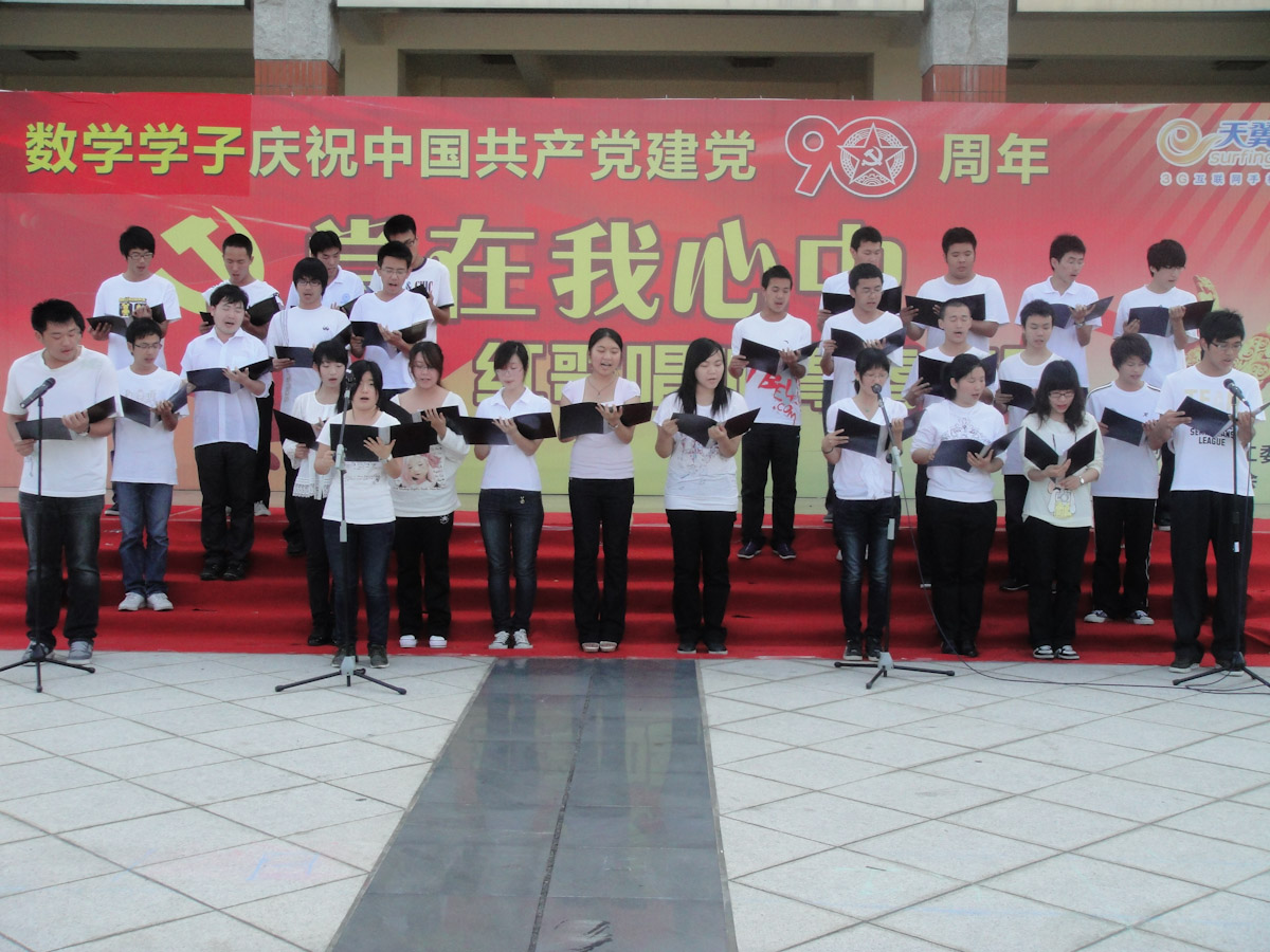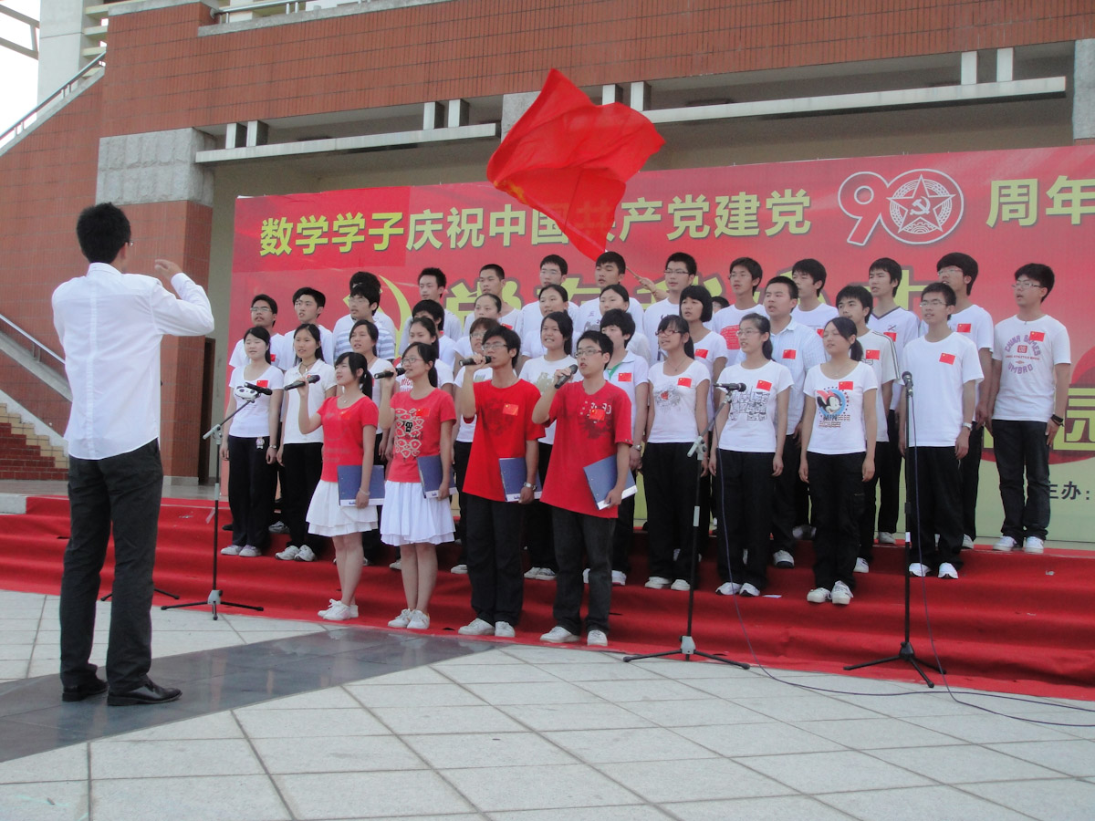 5月21日15时30分,数学科学乐竞体育-中国一站式服务官网在风雨球馆东侧举行了庆祝“建党90周年”学生活动——“党在我心中”红歌合唱比赛。本次比赛共有一二年级的5个班级参赛,乐竞体育-中国一站式服务官网党委书记张明智,团委副书记杨机像,与09、10级各班班主任宣飞红、黄雪莹、曹娟、黄宏伟、李安作为评委出席了本次比赛。