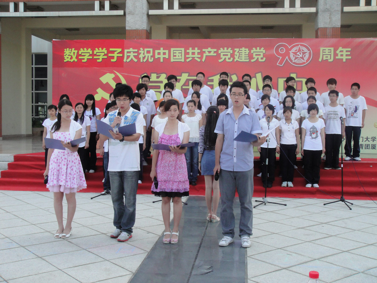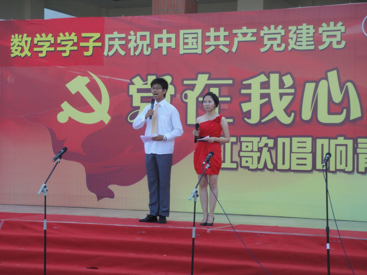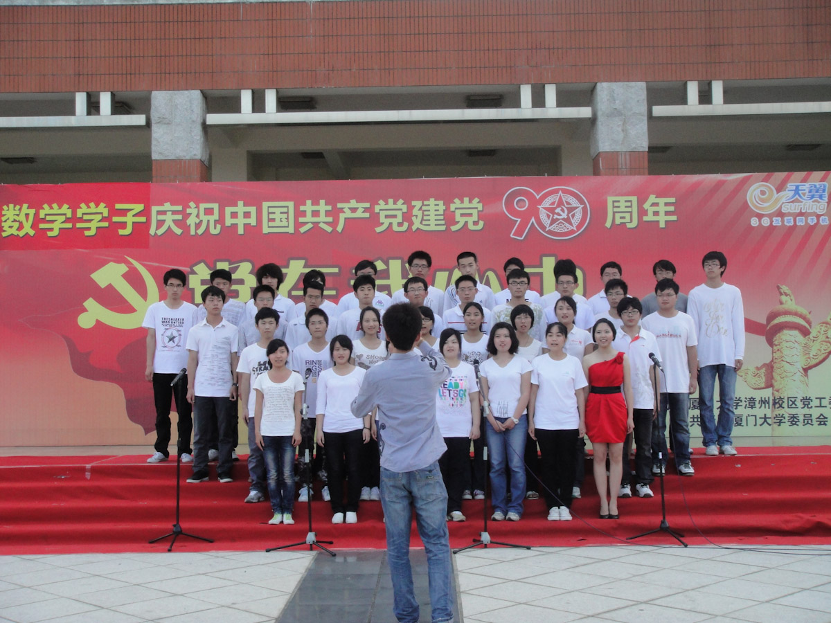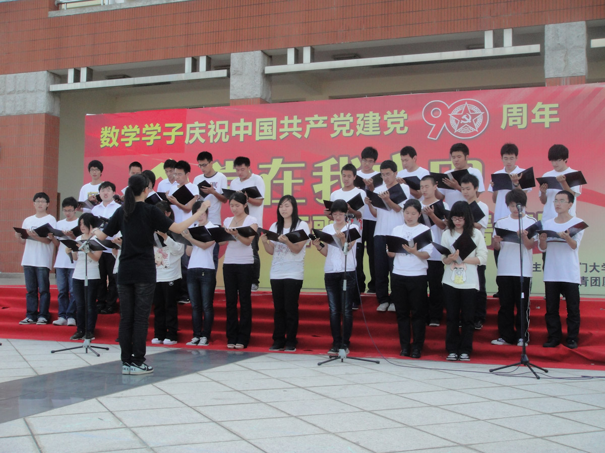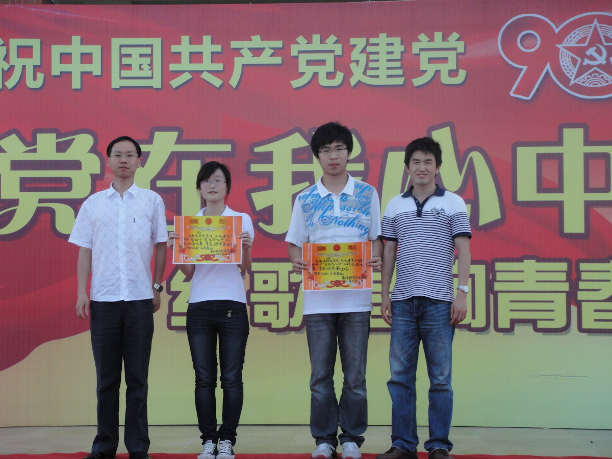 5月21日15时30分,数学科学乐竞体育-中国一站式服务官网在风雨球馆东侧举行了庆祝“建党90周年”学生活动——“党在我心中”红歌合唱比赛。本次比赛共有一二年级的5个班级参赛,乐竞体育-中国一站式服务官网党委书记张明智,团委副书记杨机像,与09、10级各班班主任宣飞红、黄雪莹、曹娟、黄宏伟、李安作为评委出席了本次比赛。