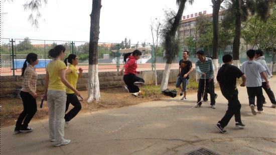 混合组:3分钟10人长绳8字跳。