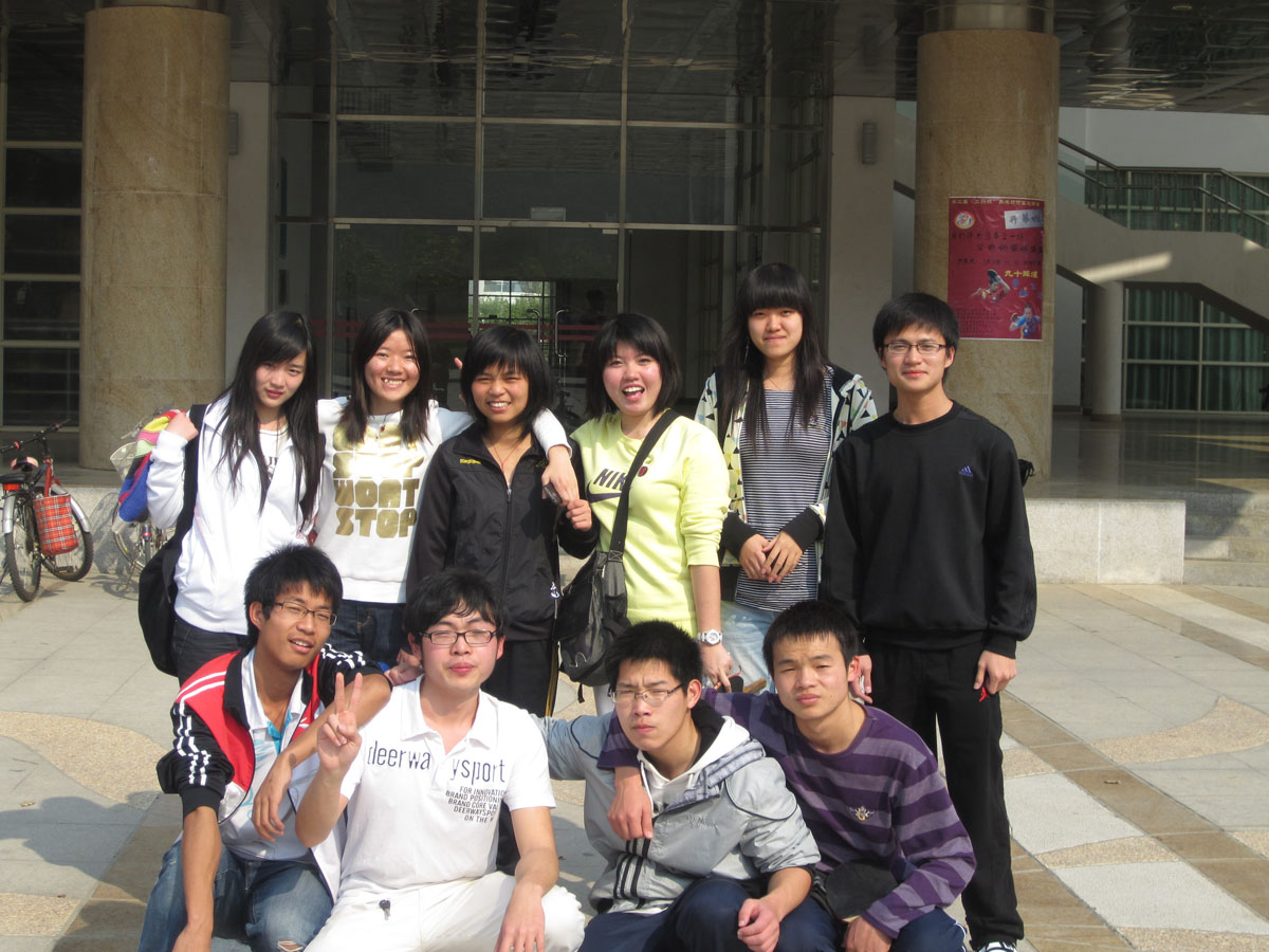乒乓球队员合影(后排左起:09级叶芸、10级方璘文若、陈元、09级任楚萌、刘卓、10级张新栋;前排左起:10级吴文燚、09级刘斯宇、10级陈汉、江全荣)