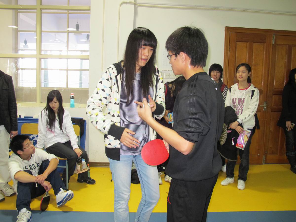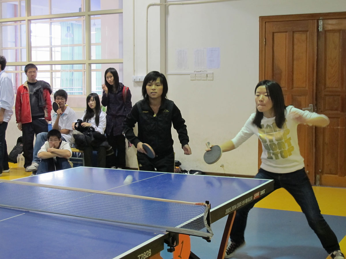 前两场混双与女单的比赛就像八强争夺赛的重现,首先出场的09级刘卓与10级吴文燚不负重望,3:0轻松打败对手为我院迎来开门红,短暂休息过后,刘卓再次在女单赛场上以大比分领先优势为我院再拿一分,为之后的比赛奠定了基础,她全面的技术与稳定的表现也将现场气氛推向高潮。