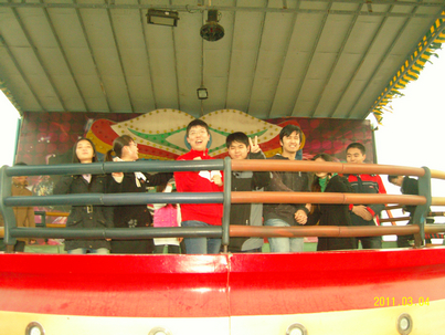 大家一路欢笑来到了椰风寨,首先映入眼帘的是高达六十米的跳楼机,这立即吸引了大家的注意力,纷纷表示要尝试一下“跳楼“的感觉。随着“滴”的一声,跳楼机开始启动,高速上升和下降,引起大家的连连尖叫,在空中滞留的时间里能看看远处的风景,有种舒畅的感觉。接着有人提议去玩碰碰车,大家开着车,瞄准别人的车撞,玩得不亦乐乎。紧接着飞龟引起了大家的注意,在这个上下左右翻滚的小家伙上,大家转得都分不清东南西北了。飞龟的对面是迪斯科旋盘,这是最刺激的游戏,旋盘开始转动后,刚开始大家都还能站稳,但最终都经受不了离心力的作用,东倒西歪,出尽了“洋相”,也给这次女生节之行增加了更多欢声笑语。经过十几分钟的转动,大家都筋疲力尽了,像历经了一次长跑运动,虽然很累,但大家脸上都露出灿烂的笑容。最后一个游玩地点是鬼屋,全体同学都参与了其中,鬼屋里一片漆黑,有各种骷髅和恐怖东西,还有阴森的声音,引起女生们的连声尖叫。