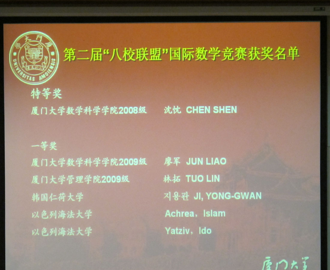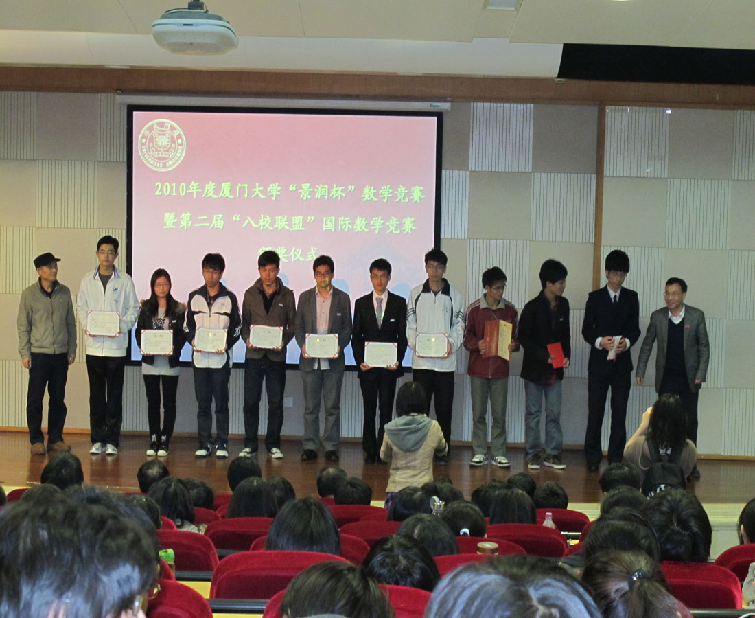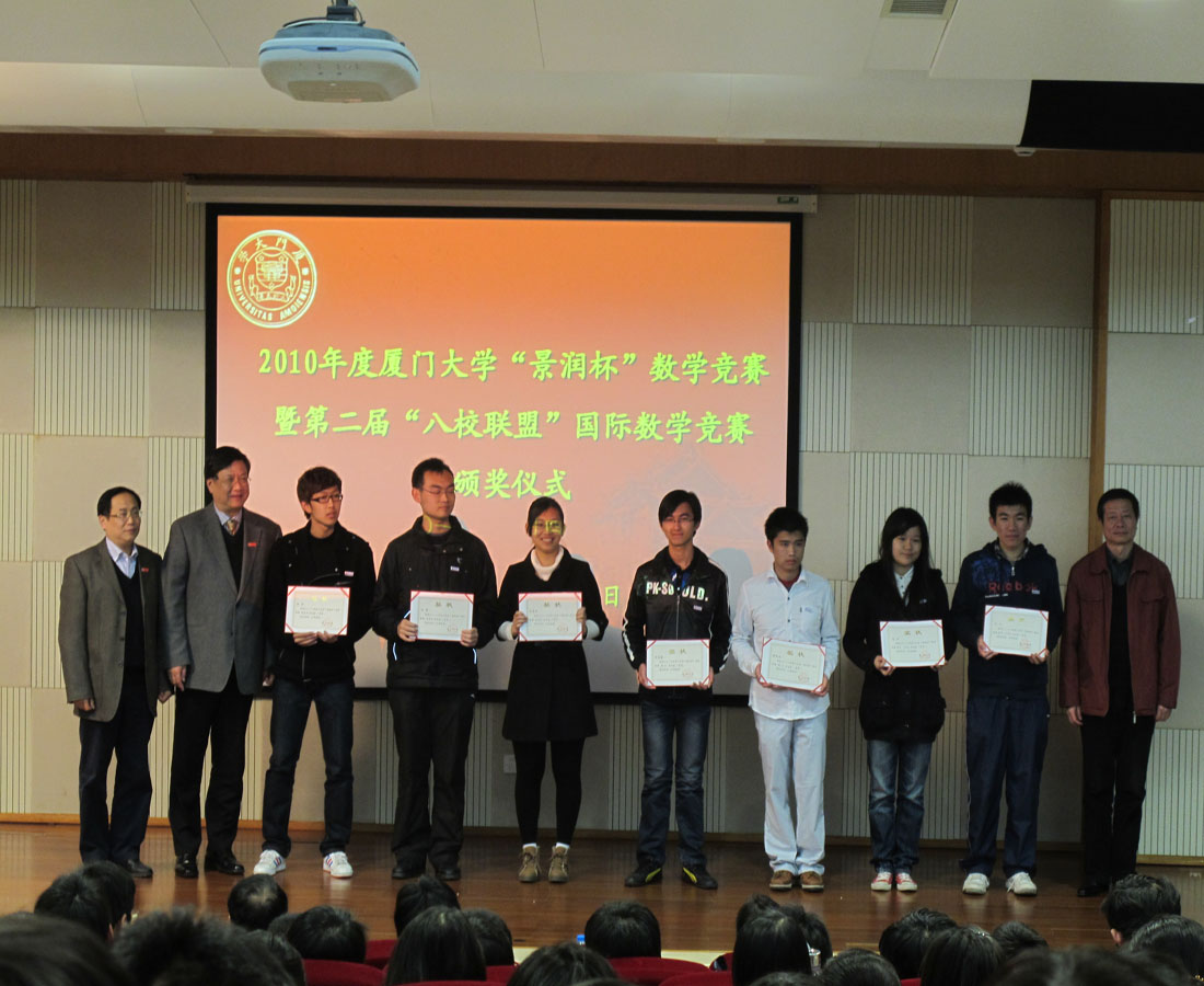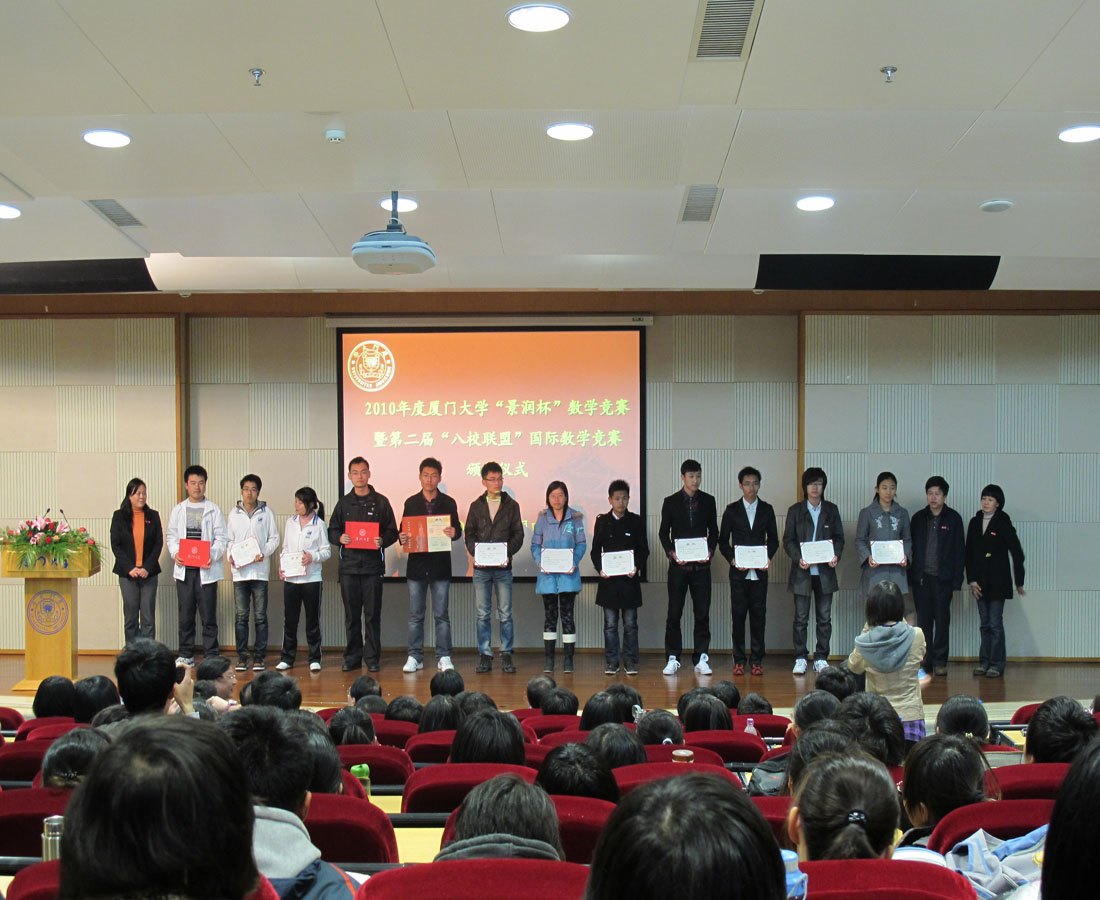 厦门大学“景润杯”数学竞赛是我校主办的、面向在校大学生的群众性科技活动,旨在激发在校大学生学习数学的兴趣和积极性,是厦门大学每年一度的重要赛事;“八校联盟”国际数学竞赛是由来自世界各地包括厦门大学在内的八所高校联合主办,此次在我校举行。