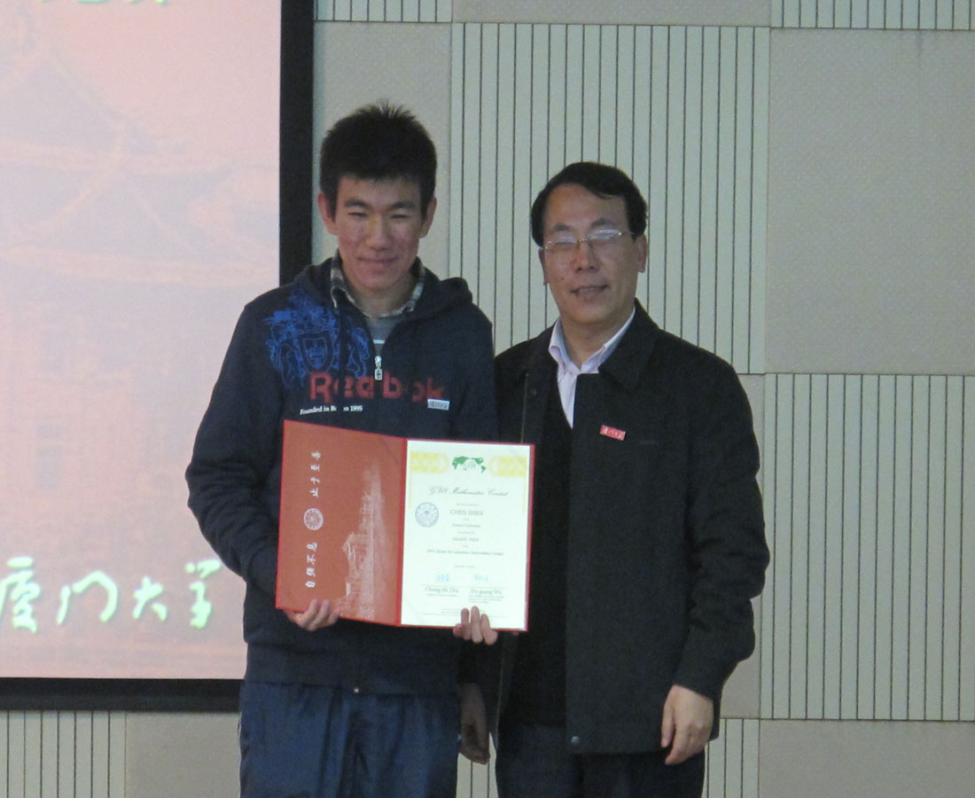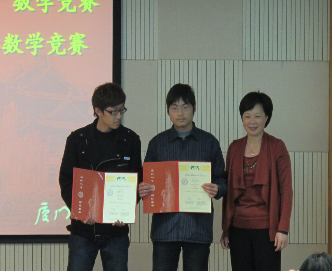 本届“景润杯”数学竞赛经过层层选拔,最终由我院08级沈忱,09级石伊获取专业组一等奖,王倩雯、侯威、姜冲等亦作为获奖学生代表上台领奖。我院08级沈忱同学蝉联“八校联盟”数学竞赛特等奖的殊荣,09级廖军同学获得“八校联盟”国际数学竞赛金奖,陈升泷同学获铜奖。