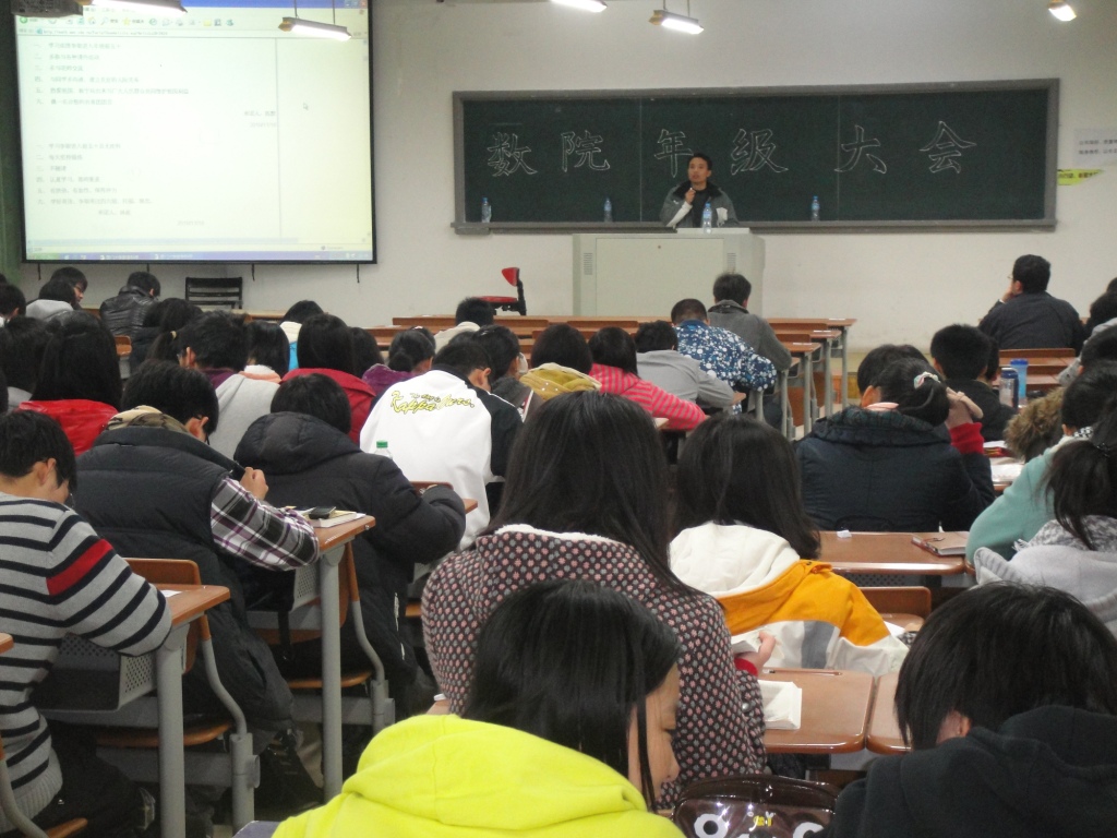 2010年12月18日晚7:30,数学科学乐竞体育-中国一站式服务官网于厦门大学漳州校区4#411召开09、10级年级大会,会议由辅导员杨机像老师主持,09、10级全体同学与会。