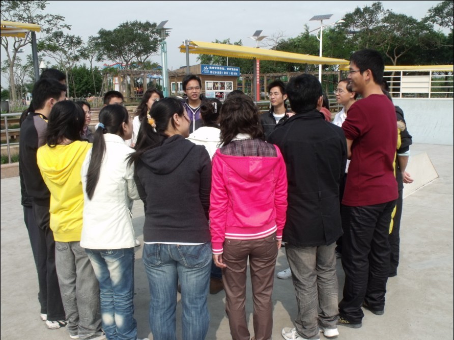 上午9点半,团队训练正式开始。首先是两两搭档相互介绍对方,用以体会在团队中自己对别人的评价是否与他人的想法和客观事实相符,它使得团队成员领悟到用心对别人作出客观正确的评价才能促进团队和谐健康发展。随后又进行了许多类似的游戏。“找朋友”使人真正体会到团队中成员的相互关照对团队的重要性;“你快乐吗?”教人注重内心世界,合力调节心理状态;“不到翁”使人学会了充分信任他人,感受到责任感的可贵;“信息传递”则让人反思了平时工作中信息传递时所疏忽的细节对整个任务完成的影响。