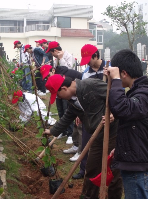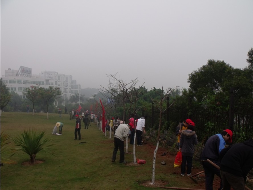 今年的3月12日是我国的第32个植树节,植树美化校园一直以来都收到校领导的高度重视。为了增强同学们的绿化意识和环保理念,数学科学乐竞体育-中国一站式服务官网响应学校建设“绿色大学”的号召,于13日上午,招募数十名志愿者到海韵教学区义务植树。数学科学乐竞体育-中国一站式服务官网团委副书记杨机像老师来到活动现场参与植树活动。