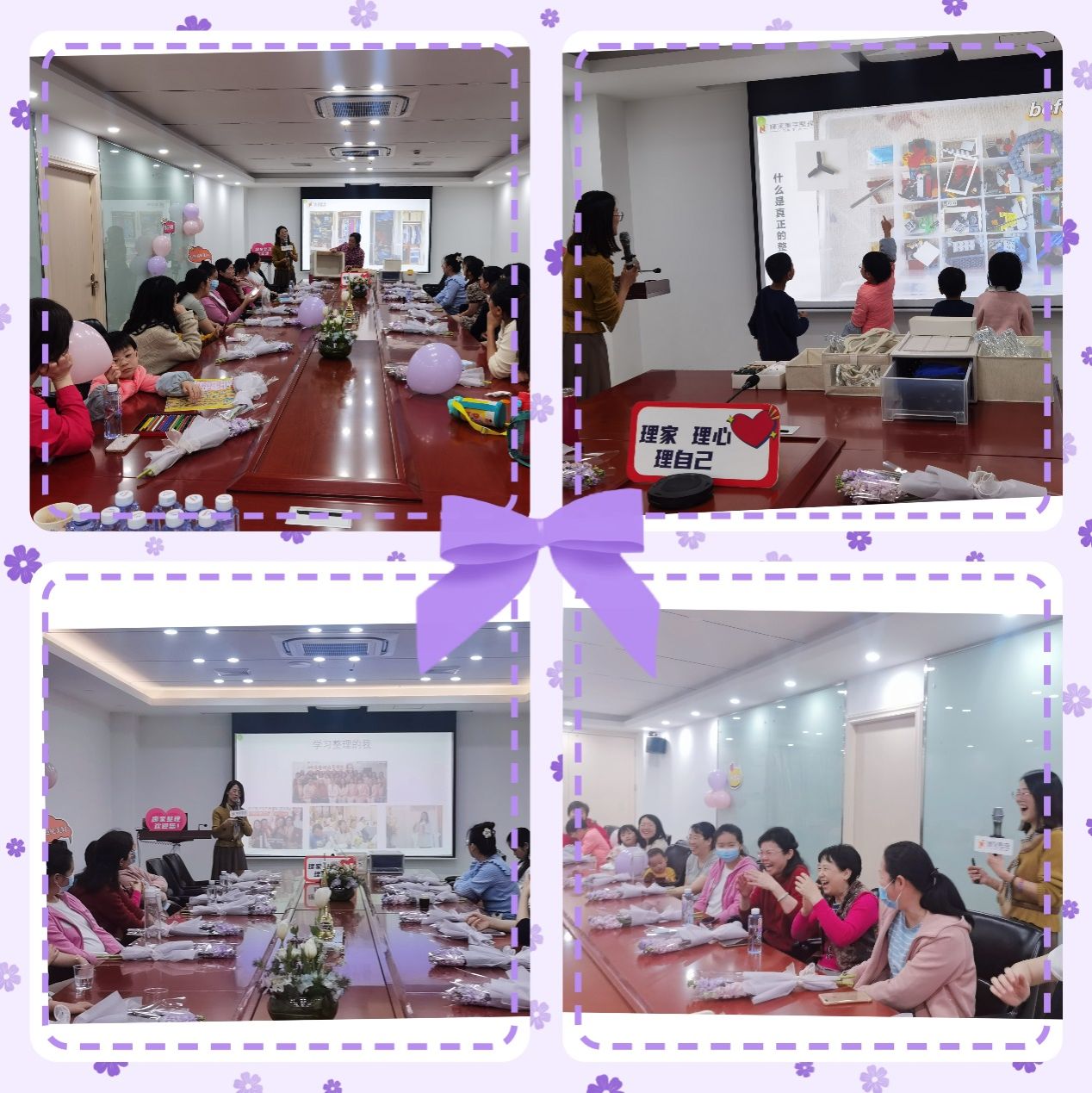 沙龙在轻松的氛围中开启,职业整理师郑女士领着大家闭上眼睛想像清晨充满阳光和爱的家庭生活场景,紧接着她又把大家拉回现实中赶早上班慌乱的场景,大家进行了热烈的讨论,获得十佳教师的女老师们介绍经验说她们每次去上课前一天除了备好课,还要准备好穿搭什么衣服,甚至每次课会穿不同的衣服,给学生以新鲜感,饱满的精神状态和整洁优雅的衣着能提升上课效果。在讲座中,整理师从“什么是真正的整理”、“整理的好处”、“如何一次整理,永不复乱”等方面一一解答了大家的困惑,并针对衣橱整理,让大家进行了衣物折叠的实操,跟着妈妈一起来的几位小朋友也参与到活动中来。整理空间其实也是在整理心情,将爱与和谐带入生活,让工作更加高效率。