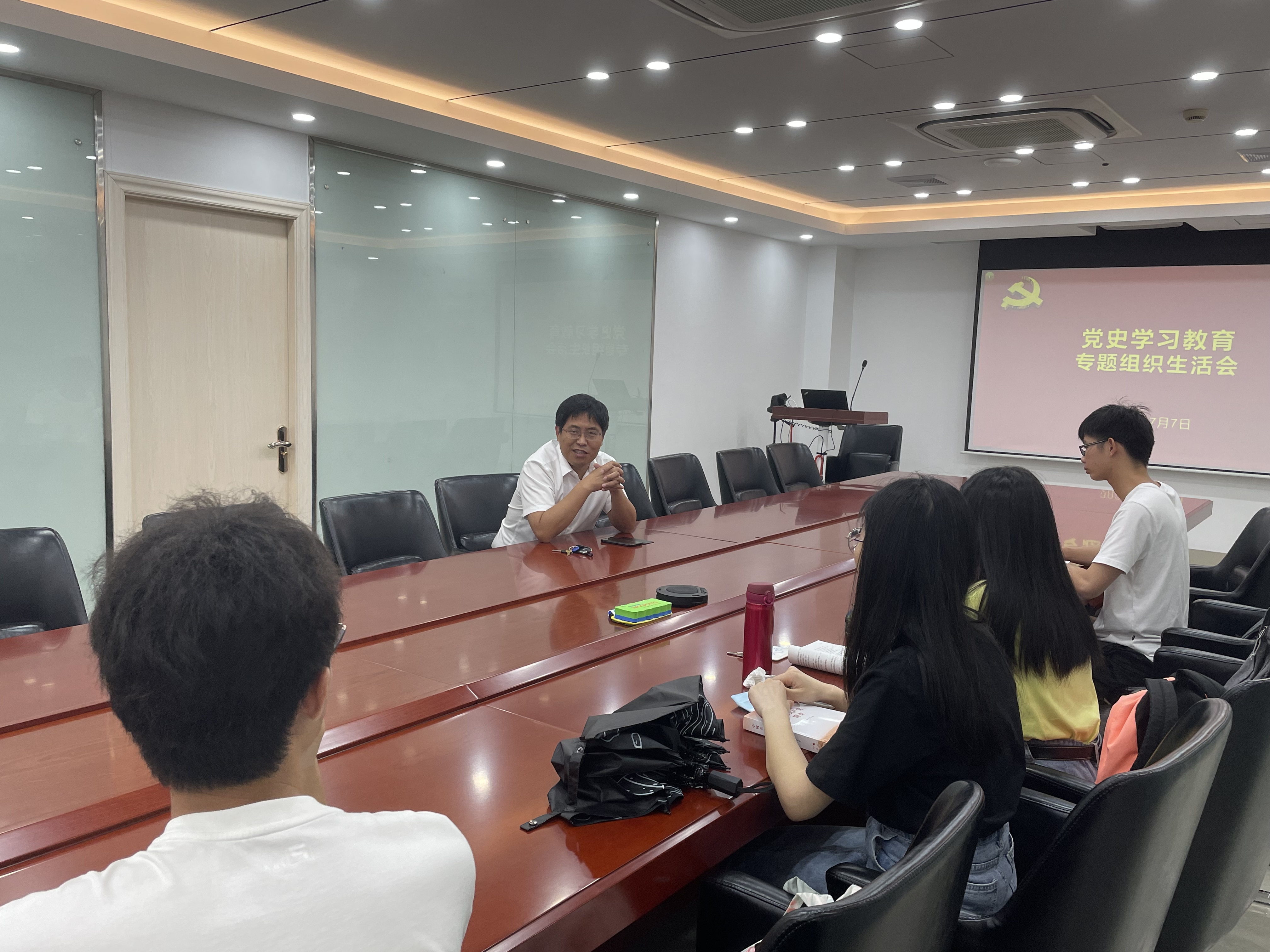 2021年7月7日,硕士应用数学党支部在数理大楼6楼TMSE会议室召开党史学习教育专题组织生活会,联系支部的金贤安副院长出席并讲话,会议由党支部书记朱可夫主持。