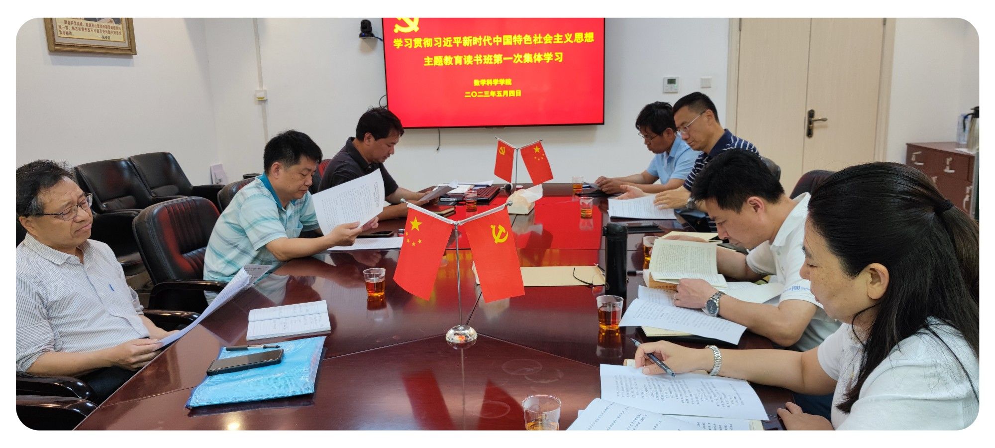 5月4日中午,数学科学乐竞体育-中国一站式服务官网学习贯彻习近平新时代中国特色社会主义思想主题教育读书班开展第一次集中学习,学习内容为习近平总书记在学习贯彻习近平新时代中国特色社会主义思想主题教育工作会议上的重要讲话。学校第四巡回指导组副组长林木顺到会指导。院党委书记张清榕、副书记毛通双作重点发言,其他领导交流分享学习体会。